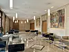 Vi passerer sikkerhetskontrollen og går inn i det som en gang huset Den internasjonale arbeidsorganisasjonen (ILO). Bygget er oppført i nyklassisistisk stil, med veggmalerier, marmor og høyreiste vinduer. Dette var det første bygget i Genève reist spesielt for en internasjonal organisasjon. ILO flyttet inn i 1926.
