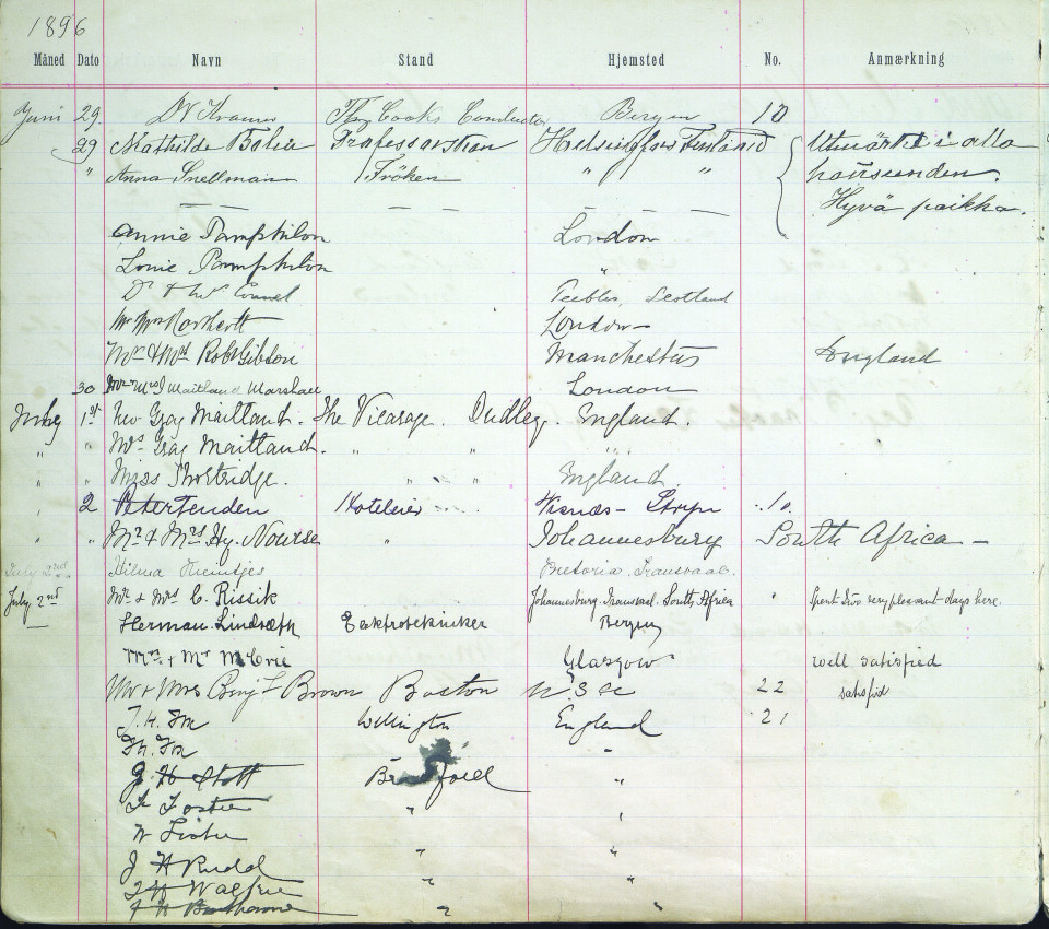 I arkivet møter vi turistane direkte, som begeistra formidlarar av hotellbesøk og opplevingar av vestnorsk fjordlandskap, men òg som kresne gjester. I mindre tydeleg tale, men i form av vel dokumenterte rekneskapsbøker, får vi også informasjon om fjærlendingane, som på ymse vis fann utkome og levebrød av turiststraumen til bygda. Mest av alt er likevel arkivet kunnskap om familien som dreiv hotellet – om vertskap, gründerånd og innsatsvilje.